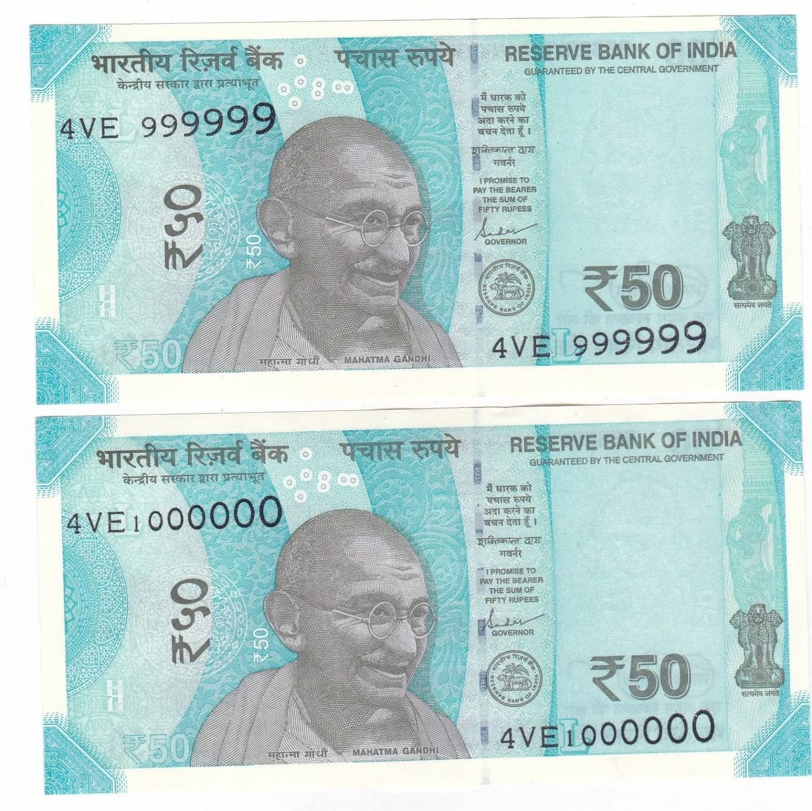Rs 50 Fancy Number Pair – 999999 and 1000000